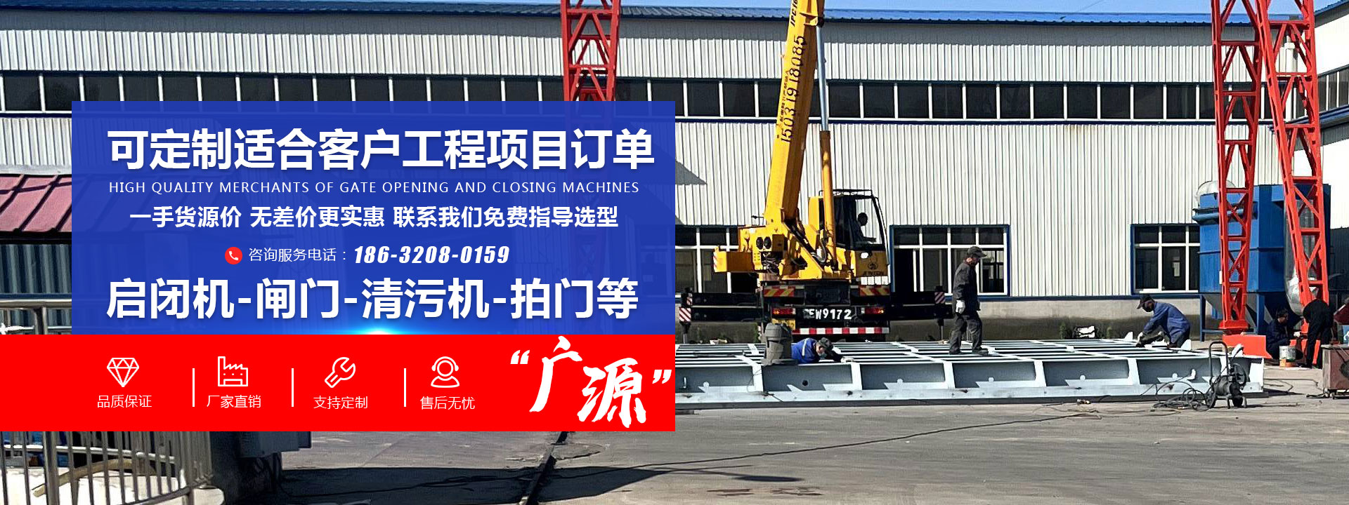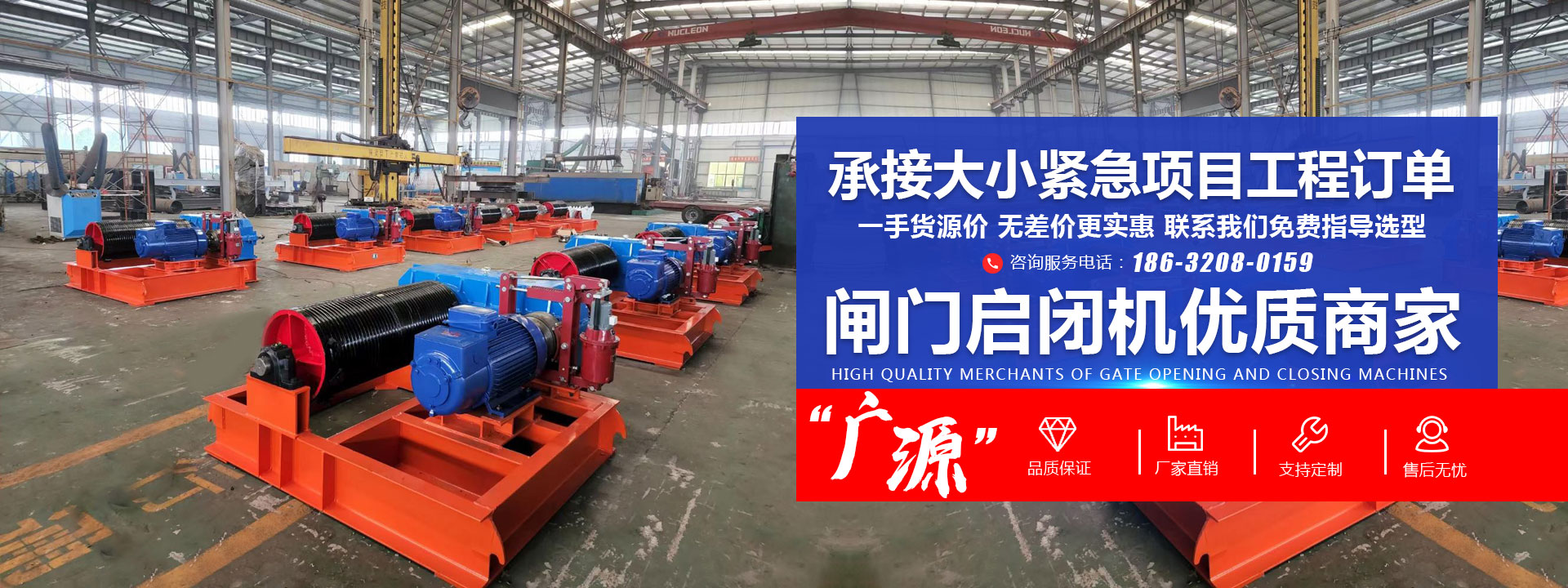 新河縣廣源水利機(jī)械有限公司是從事水工機(jī)械啟閉機(jī)、閘門(mén)、螺桿式啟閉機(jī)、固定卷?yè)P(yáng)式啟閉機(jī)、移動(dòng)卷?yè)P(yáng)式啟閉機(jī)、鑄鐵閘門(mén)、鋼制閘門(mén)、不銹鋼閘門(mén)、拍門(mén)、回轉(zhuǎn)清污機(jī)、格柵清污機(jī)及粉碎清污機(jī),攔污柵、橡膠止水的專(zhuān)業(yè)制造、生產(chǎn)及指導(dǎo)安裝的綜合性廠(chǎng)家,是制造、銷(xiāo)售、安裝一體化的規(guī)模型水利工程機(jī)械生產(chǎn)企業(yè)?! ?我廠(chǎng)主導(dǎo)產(chǎn)品:   1、螺桿式啟閉機(jī)0.3-100T;手推帶鎖式螺桿啟閉機(jī);手輪啟閉機(jī);QLP平推螺桿式啟閉機(jī)0.5-2T;QLF三防型全封閉磁力鎖螺桿式啟閉機(jī)0.3T-30T;QLC側(cè)搖螺桿式啟閉機(jī)0···